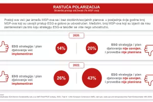 Međutim, više od 40 posto ispitanika izjavilo je da uopće nema plan održivosti, što je porast u odnosu na 20 posto od prije dvije godine, usprkos tome što rezultati ankete upućuju na to da je provedba okolišne i društvene poslovne strategije rezultirala većim zadovoljstvom klijenata, boljim ugledom, većom učinkovitošću te čak i povećanjem udjela na tržištu.