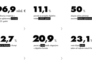 IAB Europe, vodeća europska organizacija za digitalni marketing i marketinški ekosistem čiji je hrvatski ogranak IAB Croatia, objavio je 2023 Advertising Expenditure (AdEx) Benchmark Report – temeljnu procjenu investicije u online oglašavanje tijekom prošle godine za vodećih 29 europskih tržišta. Izvještaj obuhvaća digitalne formate i kanale koji su doprinijeli godišnjem rastu digitalnog oglašavanja od 11,1 posto u 2023. godini, što je kulminiralo ukupnom tržišnom vrijednošću od 96,9 milijardi eura.