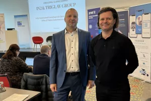 Mark Sedlak, direktor prodaje i razvoja poslovanja Sektora osiguranja IN2 grupe, i Zoran Korenjak, direktor Projekta Grupe Triglav, predstavili su zajedničkim snagama projekt implementacije IN2 proizvoda INsurance2 DIGITAL CUSTOMER.
