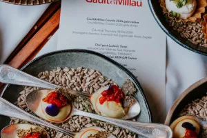 Ekskluzivnu večeru od šest sljedova zajedno su kuhali chef Ludovic Turac, nositelj trofeja Veliki chef sutrašnjice prema Gault&Millau France 2024, te chef restorana Une Table au Sud iz Marseillea, Michelin* i 3 toke Gault&Millau France, i Ana Grgić Tomić, G&M Croatia Chef godine 2022, chefica restorana Zinfandel's hotela Esplanade, Michelin Green* i 4 toke Gault&Millau Croatia. Večera je počela uz vrhunski šampanjac Veuve Clicquot Brut za aperitiv, kanapee od humusa Planet of Plants i tortica od Presidentovog brie sira. Uz kreativne riblje i mesne sljedove točila su se vrhunska vina vinarija Belje, Agrolaguna, Kuće Vina Katunar, Bora te Markus Fine Wines.
