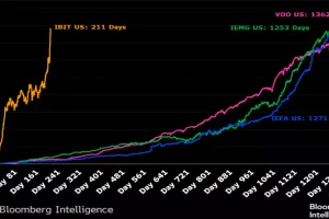 Drugi najbrži ETF koji je dosegao 40 milijardi dolara uspio je to u 1.253 dana, jedva nešto brže od trećeg mjesta. IBIT je to učinio u 211 dana, što je jedna šestina vremena.