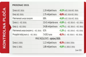 Prvi je ovogodišnji mjesec u vanjskotrgovinskoj razmjeni Hrvatske sa svijetom možda za neko vrijeme i posljednji za koji ćemo moći reći da je dobro prošao. Kako za siječanj ukazuju prvi rezultati DZS-a, ukupan hrvatski izvoz bio je na razini lanjskog siječnja, pri čemu je zabilježen pad na tržišta izvan Europske unije (gotovo osam posto), što pak je nadoknađeno rastom na tržišta unutar EU većim od tri posto. Uvoz je povećan za 0,8 posto, jednakomjerno iz EU kao i izvan njega.