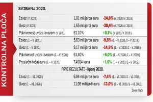 Nakon tri uzastopna mjeseca pada hrvatskog izvoza, pri čemu je u travnju i svibnju u odnosu na iste mjesece prošle godine pad iznosio oko 25 posto, preliminarni podaci Državnog zavoda za statistiku ukazuju na vidljiv oporavak izvoza u lipnju. Prema prvim rezultatima robne razmjene Hrvatske s inozemstvom, naime, izvoz je u lipnju iznosio nešto više od 1,2 milijarde eura, što je za četiri posto više nego u istom lanjskom mjesecu. Time je ublažen pad izvoza u prvom polugodištu ove godine, a koji je u odnosu na isto lanjsko razdoblje iznosio 7,4 posto. Usuđujemo se reći kako to, s obzirom na okolnosti, uopće nije loš rezultat. Treba se, naravno, prisjetiti i da je hrvatski izvoz imao pristojan rast i u prva dva mjeseca ove godine, što je također utjecalo na ublažavanje posljedica visokog pada u travnju i svibnju. Također treba reći da bi ukupan pad izvoza u prvom polugodištu ove godine ipak bio znatno veći da nije bilo visokog rasta izvoza nafte u Mađarsku.