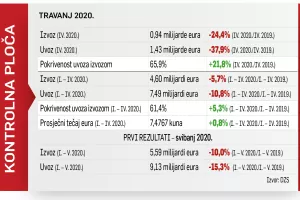 Budući je izvoz velika komponenta bruto domaćeg proizvoda, taj će pad prilično utjecati na pad BDP-a u drugom kvartalu ove godine, a još više drastičan pad uvoza u travnju i svibnju. U travnju je uvoz pao za gotovo 38 posto, a u svibnju za 31 posto u odnosu na iste lanjske mjesece.