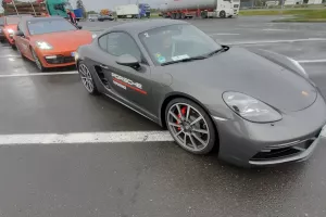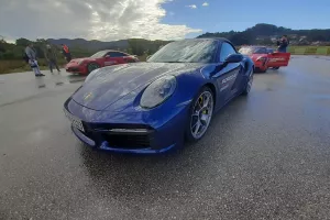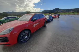Tmurno jutro i lagana kišica bili su uvertira u početak ovog Porsche dana, ali to vjerojatno nikome nije smetalo kada smo vidjeli što je na meniju. A na meniju su bili redom najnoviji modeli Porschea, 718 Cayman S, 911 Turbo S u Cabrio izvedbi, Cayenne Turbo, Panamera GTS ST i električni Taycan 4S.