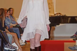 Blackpearl dizajnerice Sare Lončarić savršeno se uklopio u modnu večer u znaku secesije. Elegantne linije bluza, hlača i haljina koje laskaju ženskom tijelu, materijali koji svojom profinjenošću naglašavaju dizajn i detalji koji plijene – sve je to sadržano u jedinstvenom umjetničkom potpisu ove mlade dizajnerice.