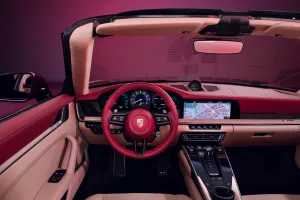 Interijerom se također želi odati počast tradiciji koristeći ekskluzivnu dvobojnu kožnu opremu gdje se kombiniraju bordo crvena koža i club koža OLEA u atacama bež boji ili, pak, koža crne boje s club kožom OLEA u atacama bež boji. S kordsamtom na sjedištima i oblogama vrata stiže povratak jednog materijala koji se upotrebljavao još u Porscheu 356 i s kojim se oživljava duh vremena i moda iz 50-ih godina. Tahometar i štoperica klasičnog izgleda sa zelenim osvjetljenjem naglašavaju emocionalnost koncepta jednako kao i perforirana presvlaka krova od mikrovlakana i bogati kožni detalji iz Exclusive Manufakture. Metalnom pločicom na ukrasnoj letvici instrumentne ploče vizualizira se individualni broj ove ograničene serije.