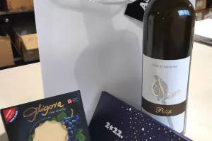 Vinarija Dine, iz Blata s Korčule, obogatila je Asbisov poklon paket Syrah crnim vinima i Pošip bijelim vinima. Dok je naša, a svjetski poznata sirana Gligora probrala najbolje sireve u elegantnim pakiranjima, koji će izvrsno odgovarati odabranim vinima.