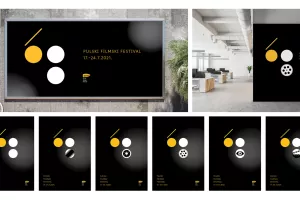 Pulski filmski festival je najstariji filmski festival u Hrvatskoj i jedan od najstarijih kontinuiranih filmskih festivala u Europi i svijetu. Ovaj vizualni identitet priča filmsku priču kroz minimalističke prepoznatljive elemente filma: leću kamere, snop svjetla reflektora, tlocrt pulske arene, kolut trake filma. Strukturiran je kao piktogramski sustav pa uz minimalnu intervenciju svaka njegova aplikacija može biti drugačija.