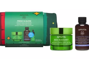 Odlična ideja je i APIVITA Božićni set koji se sastoji od tri proizvoda: Apivita BEE RADIANT bogate kreme protiv starenja kože, APIVITA BEE RADIANT seruma za sjaj kože i protiv znakova umora i APIVITA kremaste pjene za čišćenje lica i očiju s maslinom i lavandom.