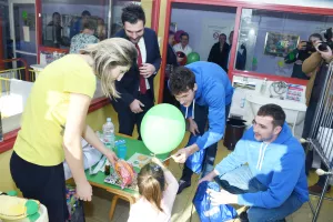Damir Butković, direktor Rafinerije nafte Sisak, uručio je ravnatelju bolnice mr. sc. Tomislavu Dujmenoviću, dr. med. ček u iznosu od 100.000 kuna, a sredstva će se upotrijebiti za nabavu fleksibilnog videoureteroskopa za razbijanje kamenca u mokraćnom mjehuru i mokraćovodu. Uz službeni dio, male pacijente s Odjela pedijatrije razveselili su predstavnici Hrvatske vaterpolske reprezentacije koji su im podijelili prigodne poklone.