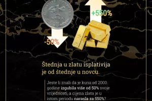 Investicijsko zlato u zadnje je vrijeme sve popularniji oblik dugoročne štednje otporne na inflaciju kojoj se okreće rastući broj štediša u svijetu, ali i u Hrvatskoj. Investicijsko je zlato standardizirano zlato koje dolazi isključivo u fizičkom obliku zlatnih poluga i zlatnika visoke čistoće te je namijenjeno dugoročnom zadržavanju vrijednosti, a činjenica da je u zadnjih 20 godina cijena zlata u prosjeku rasla oko 8.3% godišnje pokazuje da se radi o vrlo isplativom i sigurnom obliku štednje.