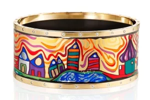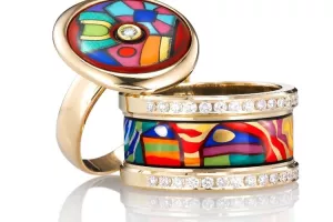 Na raskošnim okvirima od 18kt zlata ukrašenih dijamantima, uz eksploziju intenzivnih boja, zanosni motivi utjelovljuju Hundertwasserovu filozofiju - život u neprekidnom suglasju s prirodom. FREYWILLE posvećuje limitiranu ediciju kolekcije Imperial 18kt&diamonds slobodi, radosti i ljubavi. Dizajn osvaja jarkim crvenim i sjajnim plavim tonovima, te razigranim strukturama u obliku kućica okupanih jantarnim suncem. Svaki komad nakita ove luksuzne kolekcije je unikat sa svojim serijskim brojem. Osim originalne tehnike ručnog oslikavanja i pečenja emajla, nove FREYWILLE umjetničke minijature su odraz najfinije obrade čistog 18kt zlata te prekrasnih dijamanata.