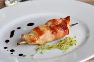 Prva delicija pileći ražnjići u panceti, se pokazala kao odličan uvod u još jednu ležernu gastronomsku večer. Posebnost Karbun Gina je u aktivnom ugljenu koji se uz njega servira, a poznato je da on otklanja toksine iz tijela. Inspiriran je snagom posljednjih karbunara s Ćićarije, područja na kojemu rastu isključivo prirodni sastojci ključni za nastanak ovog gina. Pomiješan s Teraninom, likerom od terana čini izvrsnu kombinaciju.