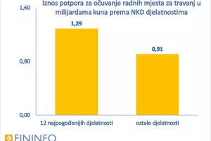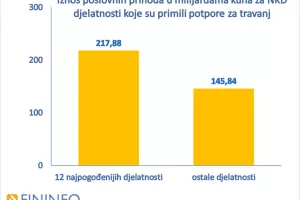 Prema podacima Fininfo portala (www.fininfo.hr) za promatranih 12 djelatnosti koje su dobile najveći iznos potpora u travnju, iznos isplaćenih potpora u odnosu na ožujak porastao je u prosjeku za 43 posto (medijan).