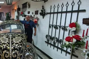 Nekada je izrađivao stotine metara unikatnih ograda, a najčešće su mu klijenti bili gastarbajteri iz Njemačke, a sada ga često angažiraju njihova djeca. No, za velike projekte više nema afiniteta, zabavlja se izradom sitnijeg namještaja, stolaca, nosača za butelje, a upravo kuje nadgrobni križ opleten ružom.