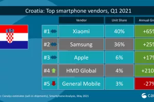 Ta je kineska korporacija napravila veliki obrat na hrvatskom tržištu u prvom tromjesečju ove godine. Prema podacima tvrtke za istraživanje tržišta Canalys, Xiaomi je u tom razdoblju propulzivnim rastom od 65 posto zauzeo 40 posto hrvatskog tržišta pametnih telefona i kao od šale zbacio s trona starosjedioce, južnokorejski Samsung i američki Apple, na drugu i treću poziciju.