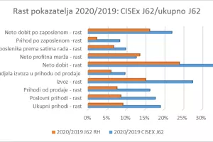 Prihodi po zaposlenom u 2020. godini su značajno veći, kao i izvoz u strukturi prihoda, neto marža itd. IT tvrtke članice CISEx-a uspjele su lani dostići neke od najuspješnijih godina po stopi rasta, a ne samo po apsolutnim iznosima koji ionako svake godine obaraju rekorde. Postotni rast izvoza je veći nego u 2019. (28% u odnosu na 26% u 2019.), dok se postotni rast prihoda održao otprilike na istoj razini.