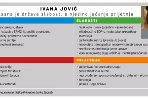 Stabilan financijski sustav i ulazak u eurozonu kao elemente snage hrvatske ekonomije vide svi analitičari iz financijskog sektora u našem serijalu 'Hrvatski SWOT'. Takvu ocjenu dijeli i glavna ekonomistica Privredne banke Zagreb Ivana Jović, čiju analizu objavljujemo danas.