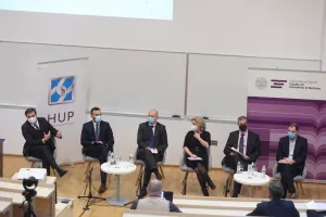 Hrvatska udruga poslodavaca (HUP) održala je na Ekonomskom fakultetu u Zagrebu konferenciju „Mogućnosti EU fondova za poduzetnike – novo programsko razdoblje 2021.- 2027. godine“. Više od devet milijardi eura ima Hrvatska na raspolaganju iz Fonda za oporavak i otpornost koje treba potrošiti do sredine 2026., a stav HUP-a je da gospodarstvu treba dati 50 posto tih sredstava. Skup su otvorili dekan Ekonomskog fakulteta Jurica Pavičić i glavni direktor HUP-a Damir Zorić.