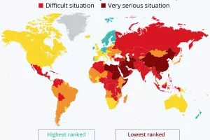 Na dnu indexa očekivano se nalazi Sjeverna Koreja, a zatim Turkmenistan i Eritreja.