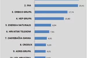 Fortenovinu vodeću poziciju zasigurno neće ugroziti rasprodaja non-core portfelja, jer će s Mercatorom imati više od 16 milijardi kuna prednosti nad Inom. No, naftašima se sve više približava najveći domaći igrač, još k tome u privatnom vlasništvu. Orbico Branka Roglića imao je još jednu uspješnu godinu. Narastao je 19 posto i prema prihodima preskočio sustav HEP grupe. Većina ostalih kompanija iz TOP 10 zadržala je razinu prihoda, osim Energije naturalis, koja je nakon strelovitog rasta prethodnih godina zabilježila dvoznamenkasti pad prihoda.
