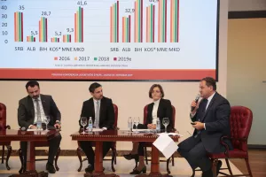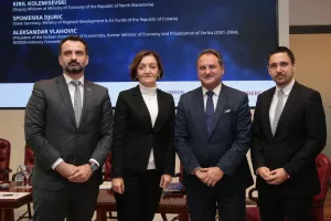 Makroekonomska perspektiva jugoistočne Europe bila je tema trećeg panela na kojem su sudjelovali Kiril Kolemisevski, zamjenik ministra ekonomije Sjeverne Makedonije, Spomenka Đurić, državna tajnica Ministarstva regionalnog razvoja i fondova EU, i Aleksandar Vlahović, predsjednik Saveza ekonomista Srbije i član Savjetodavnog odbora SEEBDN-a