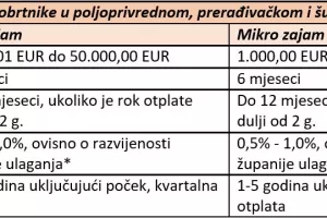 - Kredit za predfinanciranje potpora u poljoprivredi (OPG-ovi temeljem ostvarenih prava na potporu u poljoprivredi):