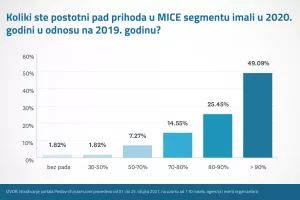 Tako je polovica ispitanika tijekom 2020. godine zabilježila 90 posto manje prihoda u odnosu na godinu ranije. Njih 40 posto imalo je pad prihoda između 70 i 90 posto, dok samo dva posto ispitanika nije ostvario pad prihoda. U konkretnim brojkama, 40 posto ispitanika potvrdilo je da je radi izbijanja krize izgubilo planirane prihode veće od pet milijuna kuna radi neodržavanja već potvrđenih događanja. Budući da je 95 posto ispitanih koristilo državne potpore za očuvanje radnih mjesta, gotovo 80 posto nije otpuštalo zaposlenike, dok je mali broj tvrtki otpustio više od polovice svojih timova, stoji u izvještaju PoslovnogTurizma.