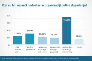 Kao najveći nedostaci u organizaciji online događanja navode se nedovoljna interakcija i umrežavanje sudionika putem interneta (75 posto), zatim različite tehničke poteškoće (29 posto), loša internetska veza (22 posto), neiskustvo u korištenju web servisa i nedovoljno zanimljivi sadržaji i govornici. Bez obzira na navedeno, polovica ispitanika smatra da će virtualna i hibridna događanja ostati aktualna i nakon završetka pandemije, dok ih 35 posto ne vjeruje u to, odnosno 13 posto je neodlučnih.