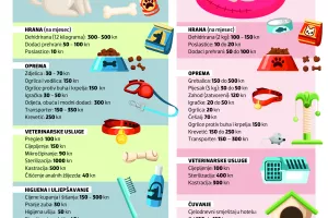 Napravili smo potrošačku košaricu za mačke i pse i izračunali koliko vlasnici ljubimaca moraju izdvojiti novca da im oni budu siti, zdravi i zadovoljni. Cijene su u odreženim rasponima jer puno toga ovisi o veličini ljubimca, kao i o proizvođaču no okvirno bi toliko platili u specijaliziranim trgovinama za životinje. Neki od navedenih troškova su jednokratni ili povremeni.