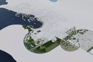 Arhitekt Žunić objašnjava da je urbanističko-arhitektonskim projekcijama za gradove budućnosti imperativ gradsku cjelinu sagledati kao jedinstven organizam, holistički i sinergijom svih dijelova, a zatim osmisliti ključne i najinspirativnije prostorne zone.
