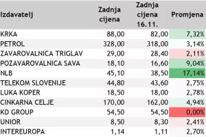 S druge strane ETF vezan za kretanje slovenskih blue chip dionica, pri zadnjoj cijeni od 27.11. bilježi solidan prinos od 4% u odnosu na početnu cijenu na dan uvrštenja. Pregledom promjena sastavnica indeksa SBI top za koji je ETF vezan vidljiv je rast širokog raspona dionica. Dionica farmaceuta Krke, koja dominira težinom u indeksu, skočila je preko 7%. Rast ostalih važnih sastavnica poput energetskog Petrola te osiguravatelja Triglava i Save također su dali potporu rastu. Uvjerljivo najveći skok bilježi dionica najveće slovenske banke NLB koja je uzletjela 17% u ovako kratkom razdoblju.