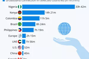 Zemlja u kojoj se najviše mora raditi da bi se priuštio najjeftiniji pristup internetu je Nigerija gdje je potrebno raditi 33 sata kako bi se mogao priuštiti najjeftiniji mjesečni ugovor za pristup internetu. Na drugom mjestu je još jedna Afrička zemlja, a radi se o Keniji gdje se za jedan mjesečni internetski ugovor radi 14 sati i 21 minutu, a nakon njih slijede zemlje Južne Amerike, Kolumbija i Brazil.
