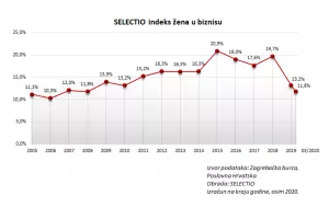 Ovogodišnji SELECTIO indeks žena pokazuje trend pada žena u businessu u Hrvatskoj te je gotovo upola manji nego prije 5 godina (20,9%). Ovi podaci potvrđuju da je neravnopravnost položaja žena u businessu sve veći problem u Hrvatskoj kojeg je potrebno aktivno rješavati.