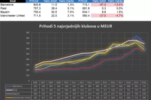 Izvor: vlastita obrada prema Statista, Deloitte, Yahoo Finance i korporativne stranice klubova.