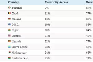 Godine 1995. samo 20 posto stanovništva subsaharske Afrike imalo je pristup električnoj energiji. Iako je današnja brojka iznad 40 posto, to još uvijek znači da oko 600 milijuna ljudi u regiji živi bez pristupa električnoj energiji.