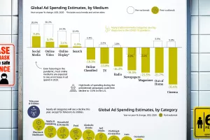 Prije izbijanja COVIDa-19 procjenjivalo se da će globalna ulaganja u oglašavanje porasti za 7,1 posto u 2020. godini. Sada se pak procjenjuje da će se dogoditi veliki pad od 8,1 posto - što je gotovo 50 milijardi dolara manje za oglašavanje, a ako se uzmu u obzir predpandemijske prognoze, ta brojka iznosi nevjerojatnih 96,4 milijarde dolara manje za oglašavanje na globalnom nivou.