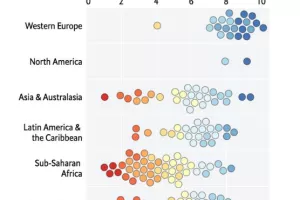 Najoštriji pad demokratskih sloboda dogodio se naravno u Kini. Postoji diskriminacija manjina u zapadnoj regiji Xinjianga, a druga kršenja građanskih sloboda, poput digitalnog nadzora, doprinijela su smanjenju bodova u zemlji s 3,32 na 2,26.