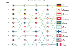 Međutim, čak i pobjednici imaju prostora za napredak. Budući da se globalna ekonomija sve više okreće u smjeru pružanja usluga u odnosu na proizvodnju, Njemačka bi mogla poboljšati stopu svog visokog obrazovanja kako bi postigla još bolju ocjenu.