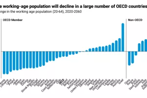 Globalno gledano, radno sposobno stanovništvo smanjit će se za 10 posto do 2060. godine. Najdrastičnije će pasti za 35 posto ili više u Grčkoj, Japanu, Koreji, Latviji, Litvi i Poljskoj. S druge strane, u Australiji, Meksiku i Izraelu porast će za više od 20 posto.