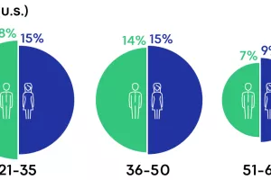 Nadalje, dobna demografija pokazuje veću uporabu među muškarcima u dobnoj skupini od 36 do 50 godina u odnosu na skupinu od 10 do 20 godina.