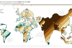 Ovaj nekonvencionalni kartogram mijenja veličine zemalja na temelju njihove ukupne populacije. U ovom stilu jedan kvadrat predstavlja 500.000 ljudi. Prema Mattu Dzuganu, prikaz kartograma trebao bi predočiti ptičju perspektivu o utjecaju onečišćenja zraka i sitnih čestica (PM2,5) na ljudske živote.
