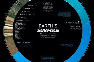Preostalih 70 posto Zemljine površine čine vode: 27 posto teritorijalnih voda i 43 posto međunarodnih voda ili područja izvan nacionalne jurisdikcije.