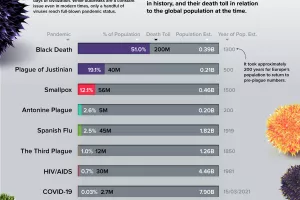 U ovoj infografici donosimo pregled najsmrtonosnijih pandemija koje su imale veliki utjecaj na globalno stanovništvo u vrijeme kada su se pojavljivale.