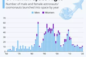 Broj ljudi koji su krenuli u orbitu dosegao je vrhunac 1985. godine kada ih je u svemir lansirano čak 62, od toga 58 muškaraca i četiri žene. Iako su u istraživanjima svemira dominirali muškarci, tijekom godina sve je više žena letjelo prema svemiru, što se može zorno vidjeti na infografici koja također pokazuje sve rjeđa putovanja između 2010. i 2020. godine.