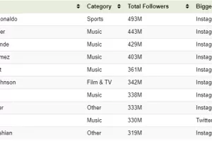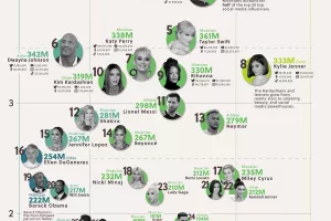 Ne iznenađuje što na društvenim mrežama vladaju slavne osobe, a među njima, kao i na nogometnim terenima, dominira Cristiano Ronaldo kojega ukupno na svim platformama prati oko 500 milijuna vjernih sljedbenika. Osim sportaša, glazbenici čine polovicu od 50 najpraćenijih na društvenim mrežama.