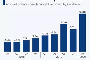 U prva tri mjeseca 2020. godine uklonjeno je i 4,7 milijuna postova od organiziranih grupa koje su s namjerom širile govor mržnje, što je povećanje od 3 milijuna u odnosu na isto razdoblje prošle godine. Za veliko povećanje uklonjenih postova i objava zaslužna je nova poboljšana tehnologija prepoznavanja slika i teksta, pa sve što je prošlih godina prolazilo 'ispod radara' s novom tehnologijom izbija na površinu.