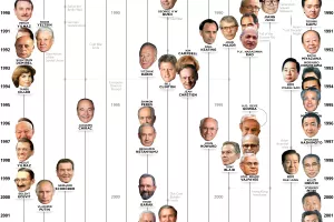 Tko su bili svjetski lideri kad je pao Berlinski zid? Koliko je žena bilo na čelima države u istaknutim vladama? A tko su najnoviji likovi na popisu svjetskih lidera? Ova infografika otkriva vođe najutjecajnijih svjetskih sila od 1970. godine do danas.