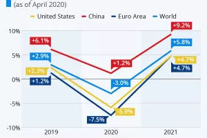 Međunarodni monetarni fond podržao je takve nade pretpostavljajući da će pandemija nestati u drugoj polovici 2020. godine. Upravo zbog toga i MMF predviđa oporavak svjetske ekonomije u obliku slova V, te kažu kako bi oporavak trebao početi već u 2021. godini.